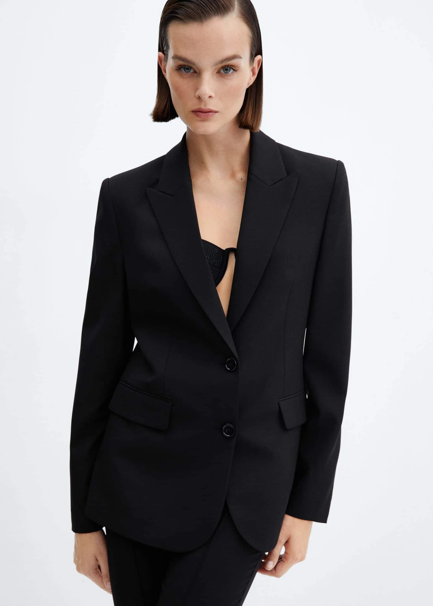 droit, col en v avec rabat, manches longues avec poignets boutonnes, deux poches passepoilees et a rabat sur le devant, fermeture a deux boutons sur le devant, bas fendu a l’arriere, doublure, total look, collection fetes et ceremoniesComposition: 100% polyester. Doublure: 55% polyester,45% viscose. Lisiere: 100% polyester