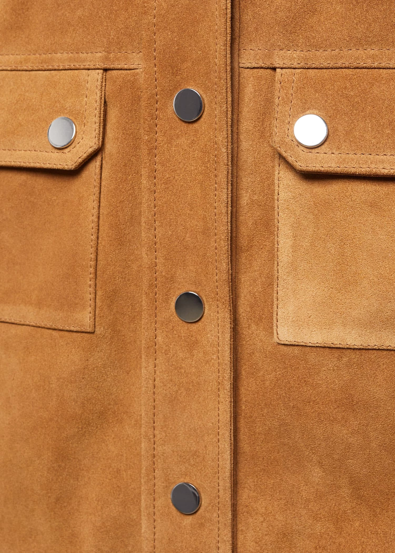 100 % cuir bovin, 100 % daim, coupe courte, coupe droite, col chemise, manches longues, deux poches a rabat avec bouton sur la poitrine, fermeture a boutons sur le devant, doublureComposition: 100% cuir bovin. Doublure: 100% polyester. Col: 100% cuir ovin
