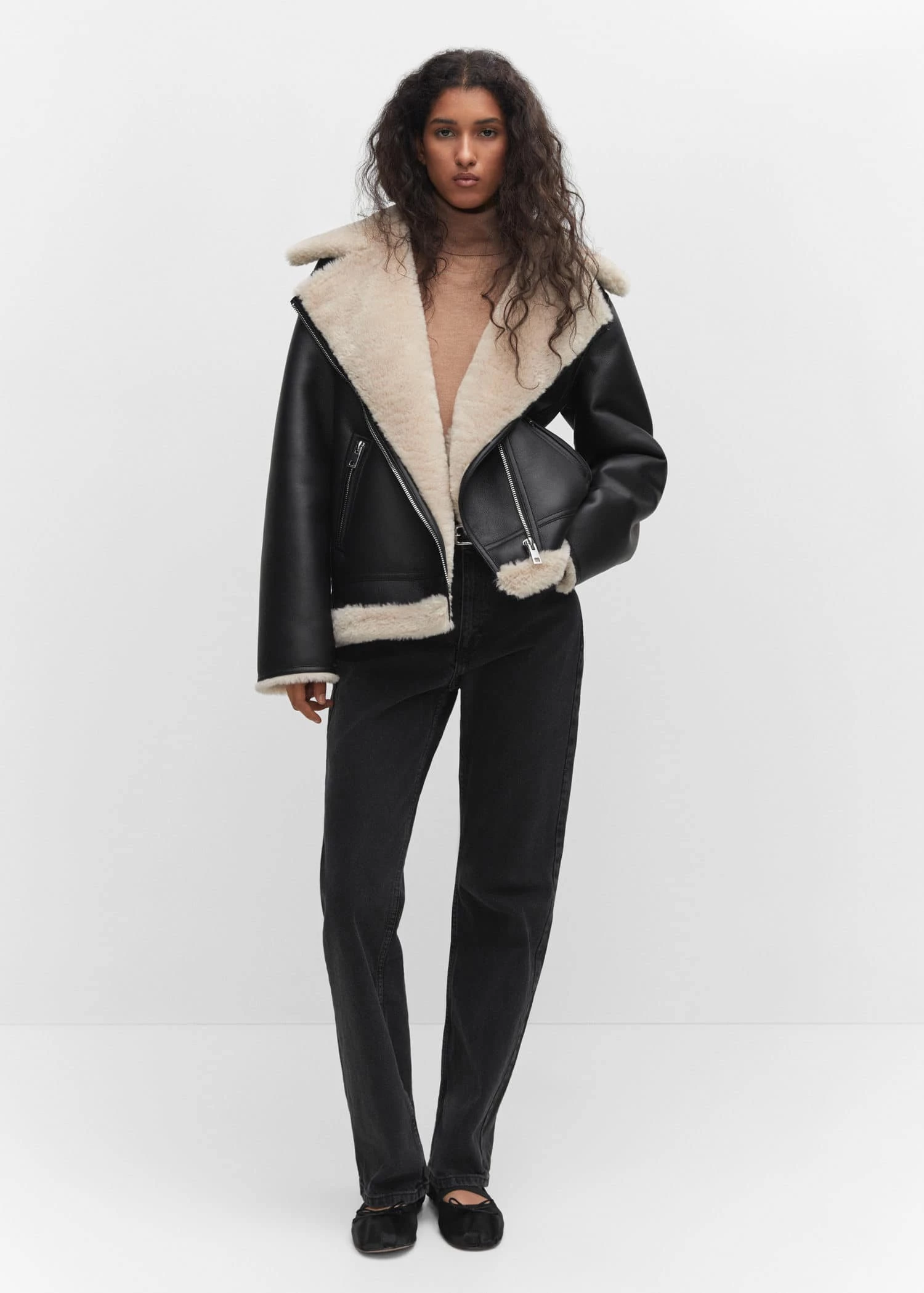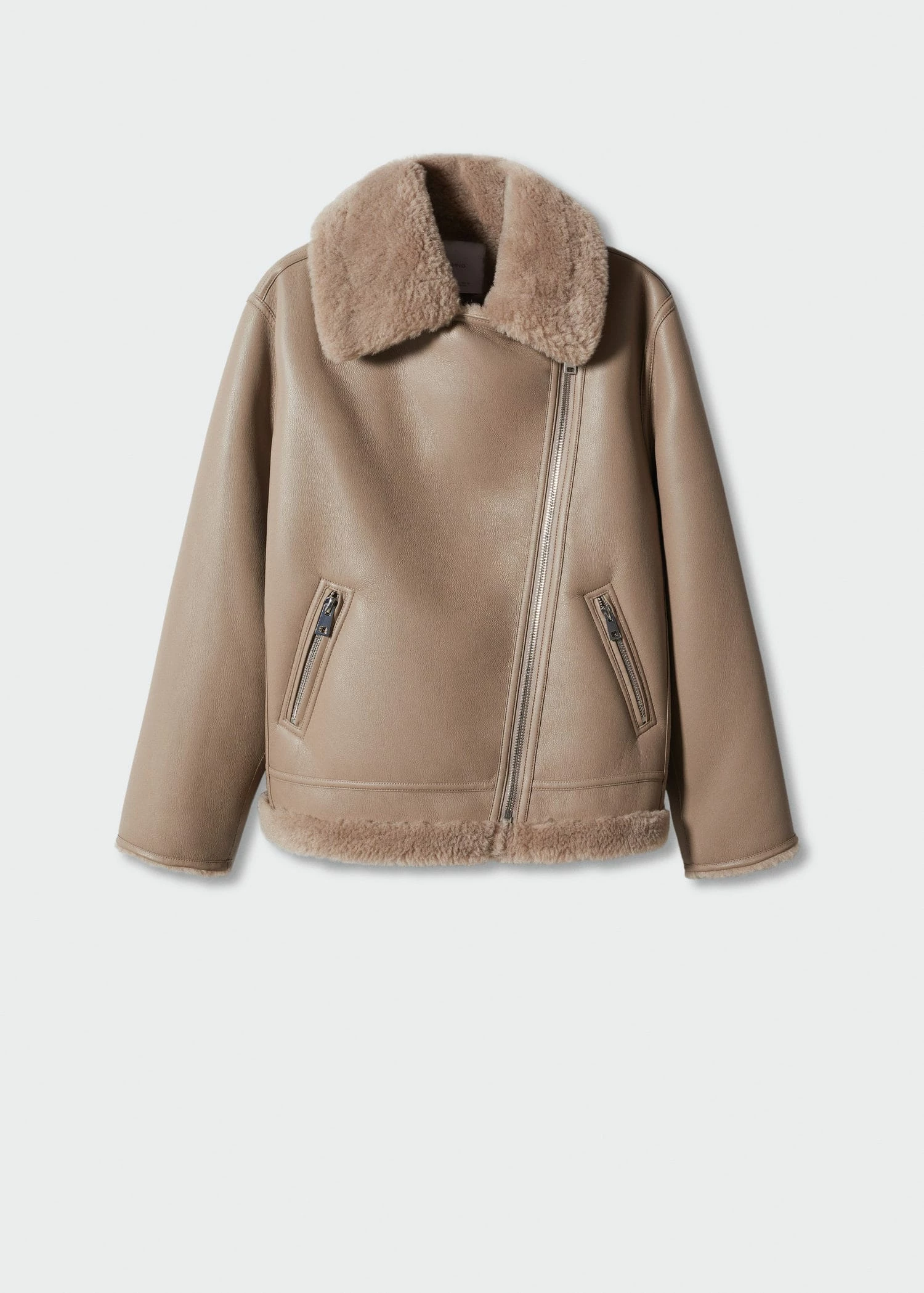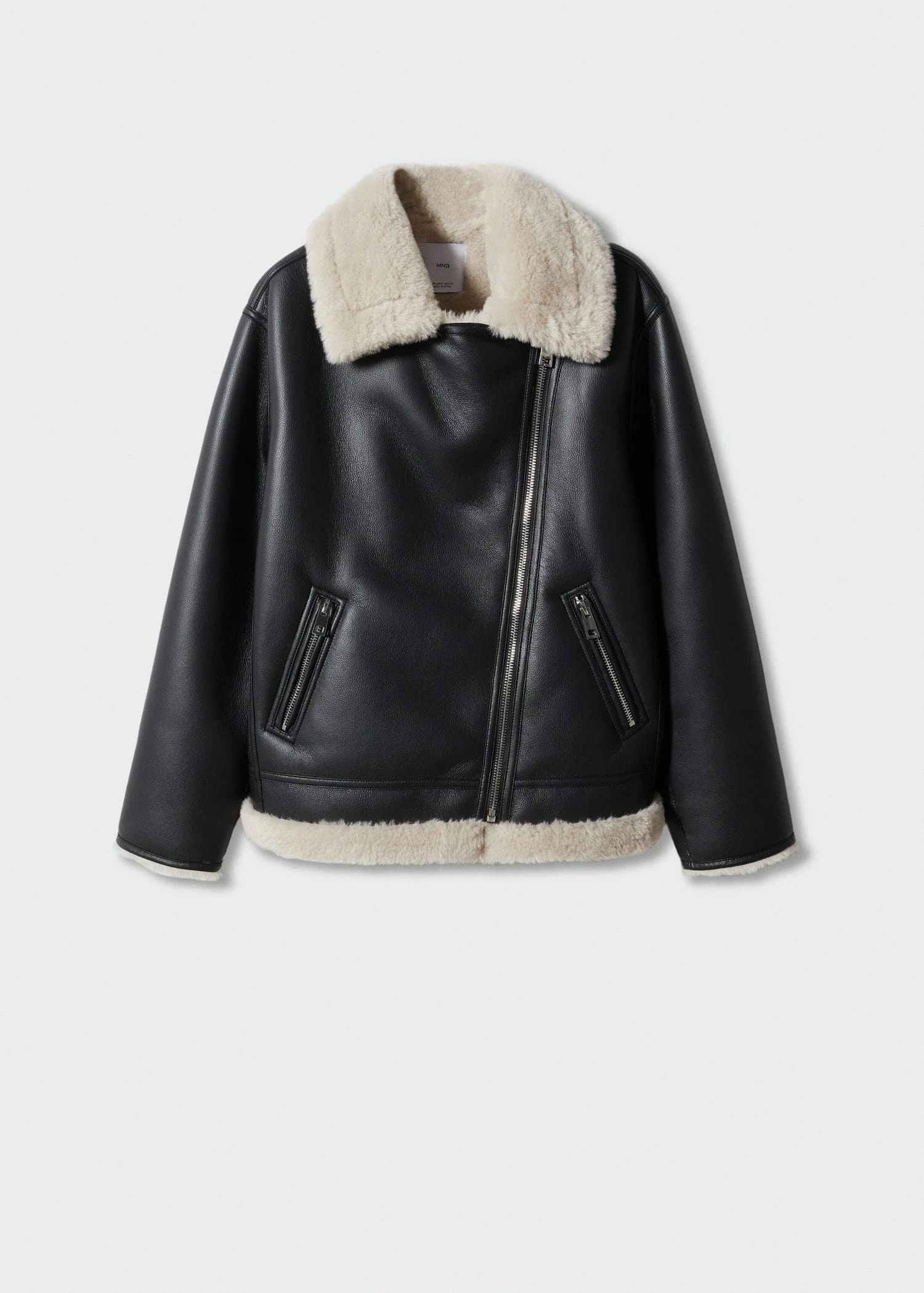 similicuir, structure lourde, double face, style biker, droit, col a revers, col moutonne, manches longues, fermeture eclair sur le devant, deux poches zippees sur les cotes, interieur moutonnee, bords moutonnesComposition: 100% polyester. Revêtement: 100% polyurethane. Doublure poches: 100% polyester