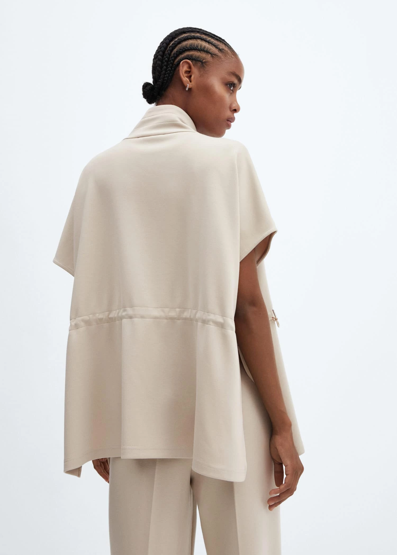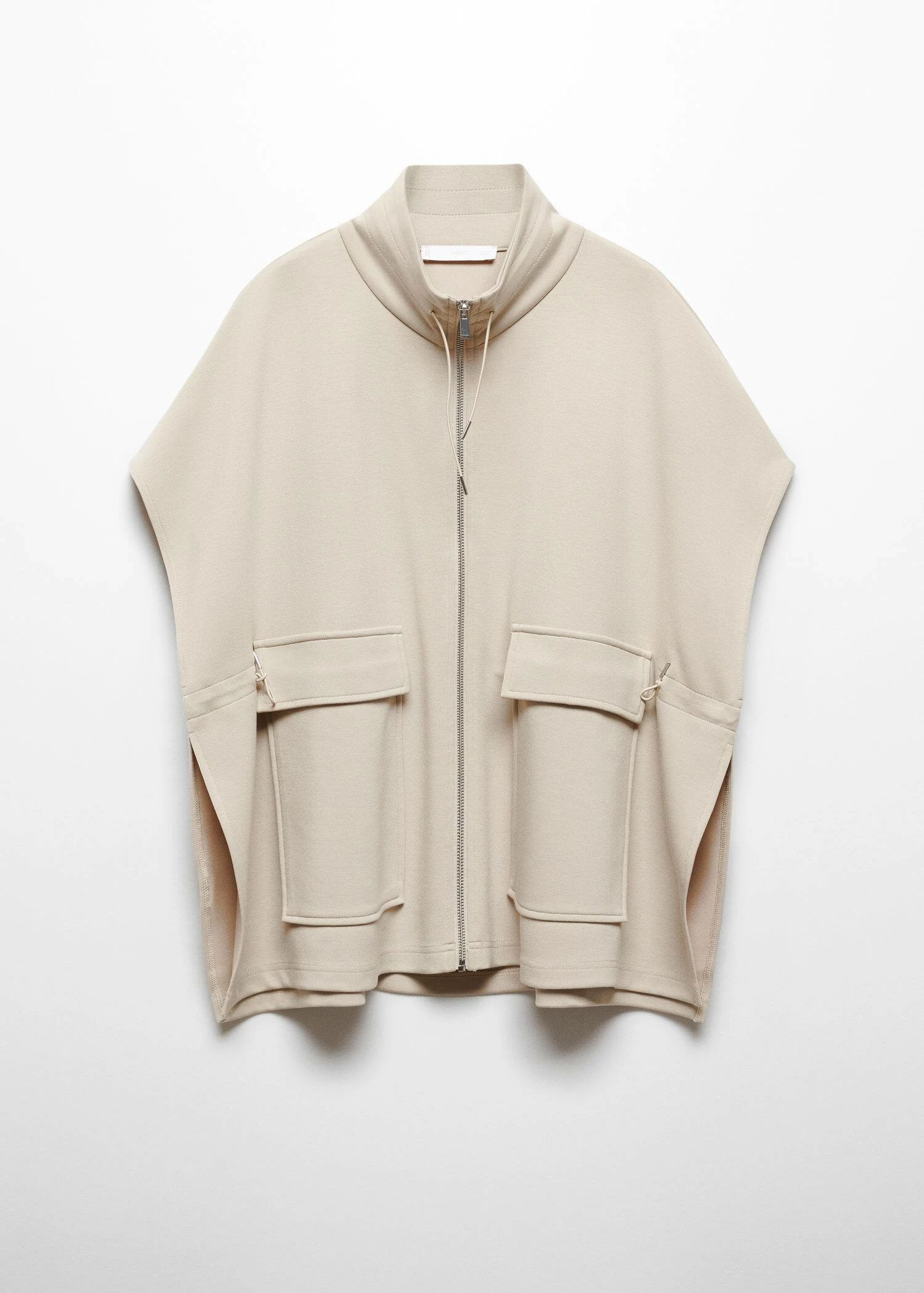col montant, manches courtes, deux poches a rabat a l’avant, cordon de serrage a la taille, fermeture eclair sur le devant, fentes laterales, total lookComposition: 81% polyester,14% viscose,5% elasthanne