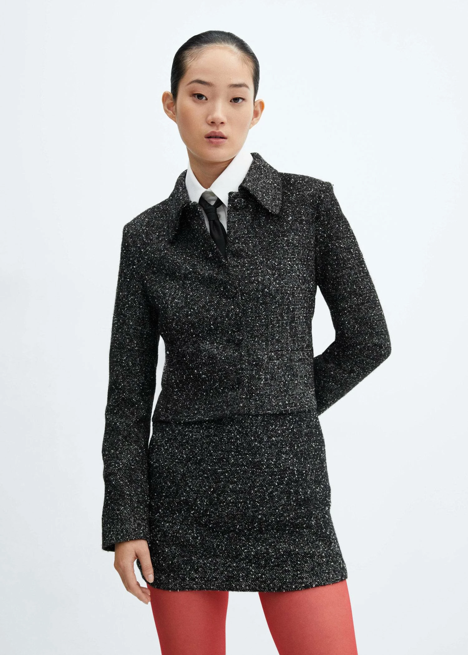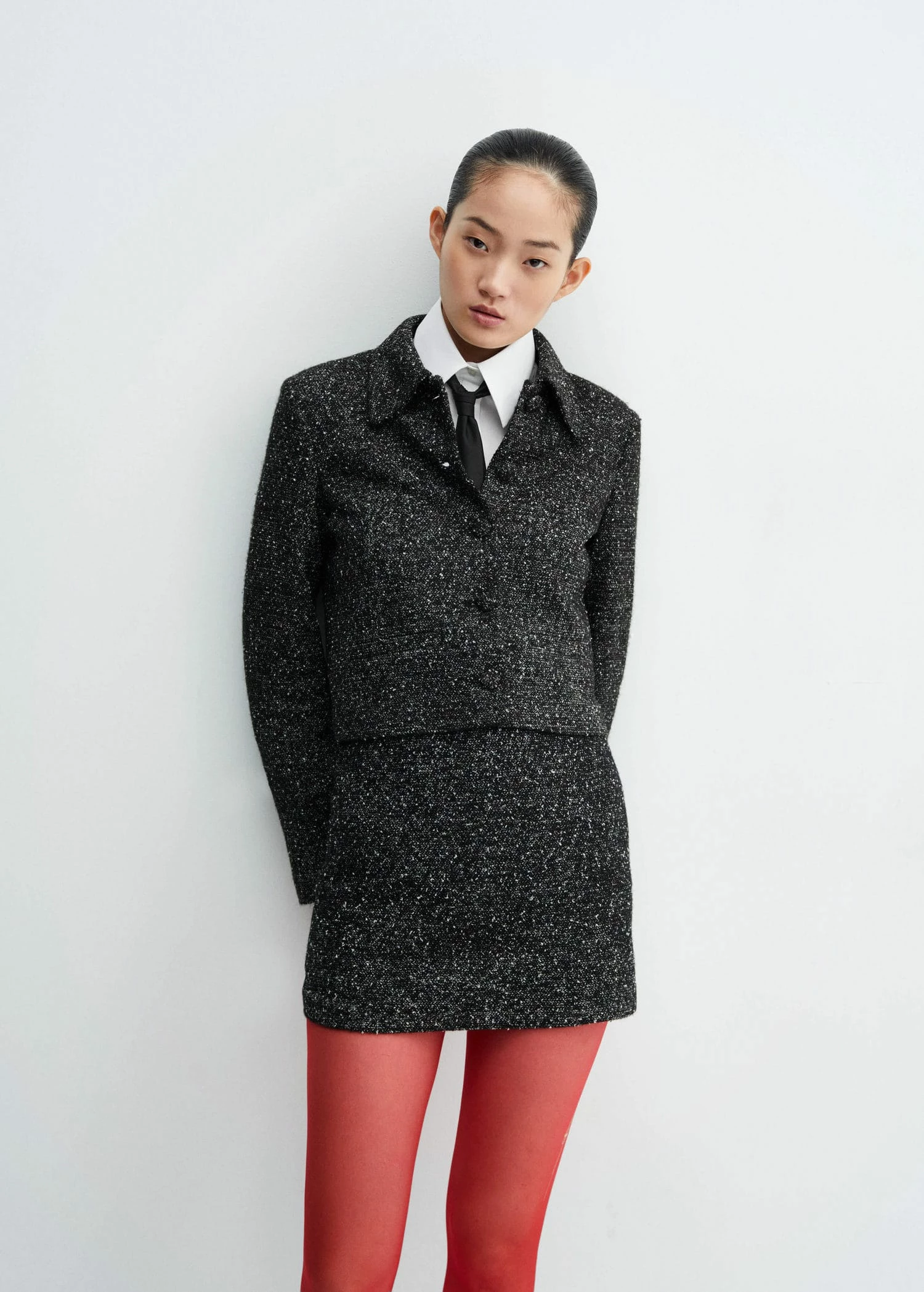 tissu tweed, coupe droite, coupe courte, imprime jaspe, col chemise, manches longues, fermeture a boutons sur le devant, total lookComposition: 70% polyester,30% acrylique. Doublure: 100% polyester