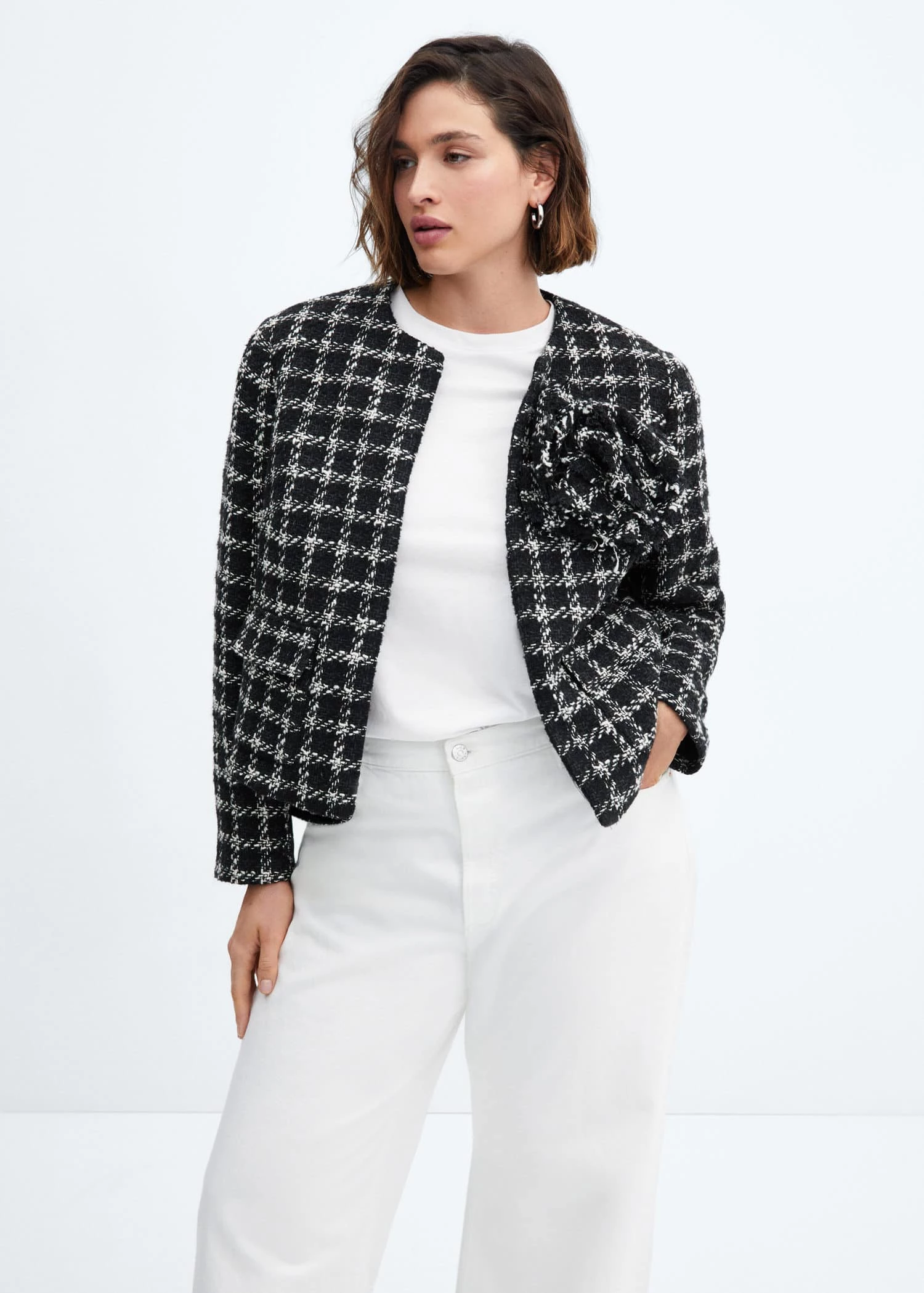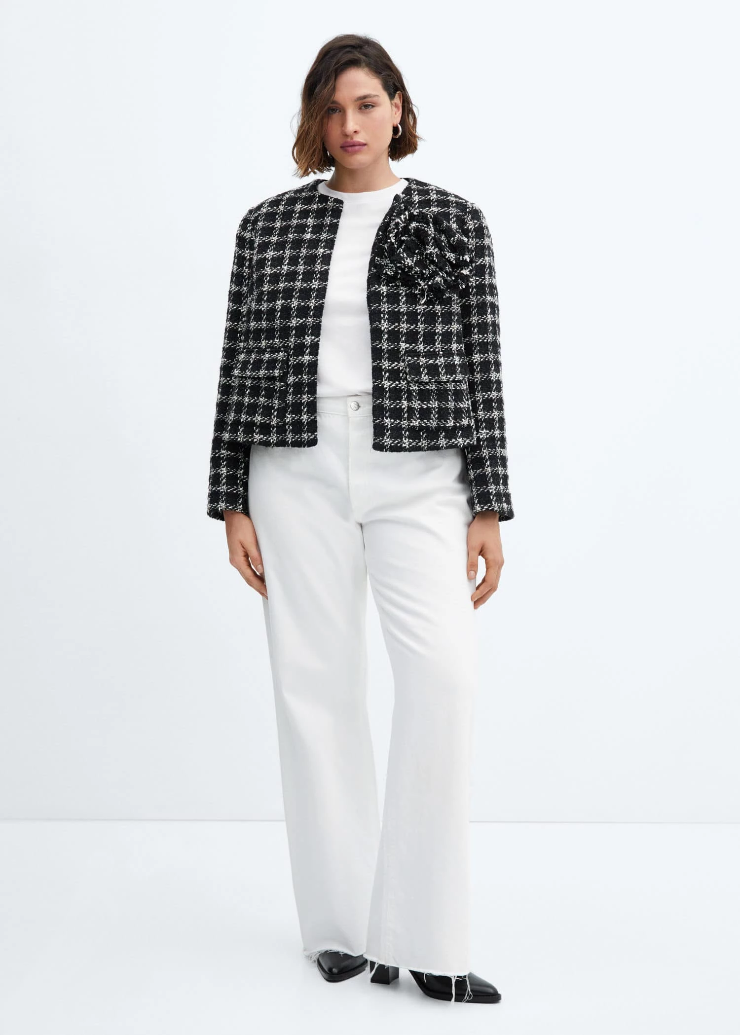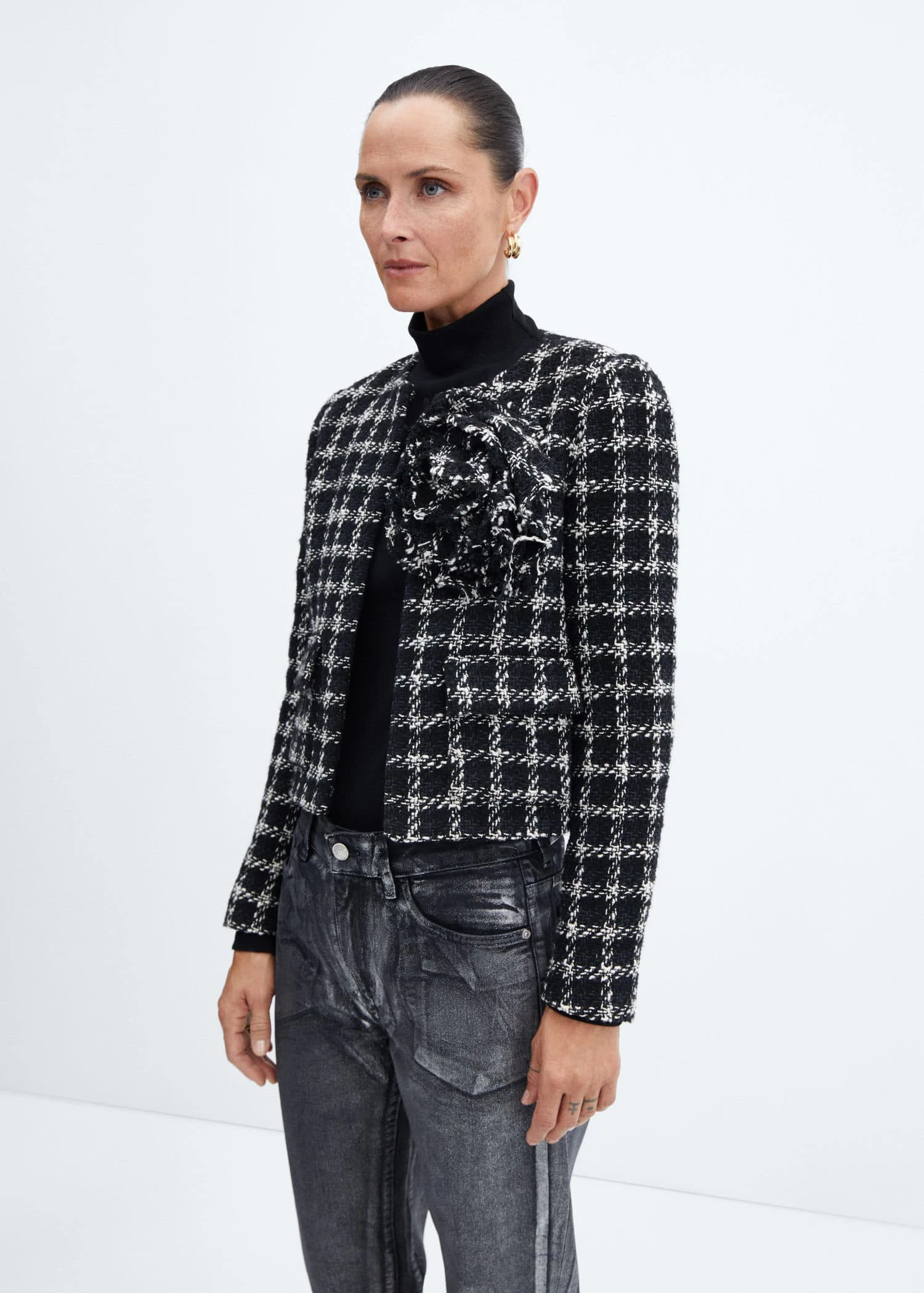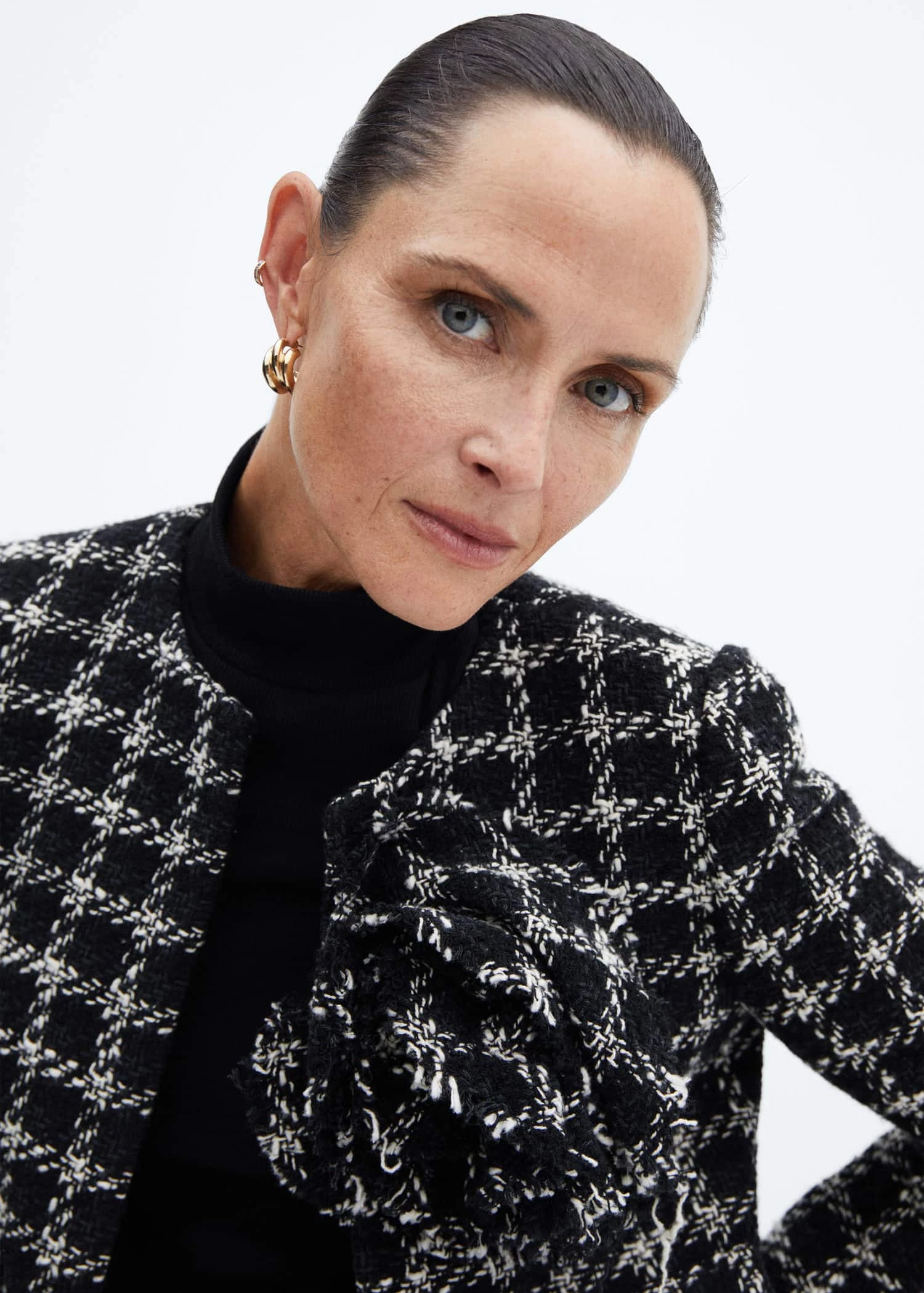 tissu en coton organique recycle melange, tissu de laine melange, tissu tweed, coupe droite, col rond, manches longues, deux poches a rabat a l’avant, sans fermeture, maxifleur, doublure, disponible plusComposition: 58% coton,33% polyester,7% laine,2% viscose. Doublure: 100% polyester. Doublure manches: 100% polyester